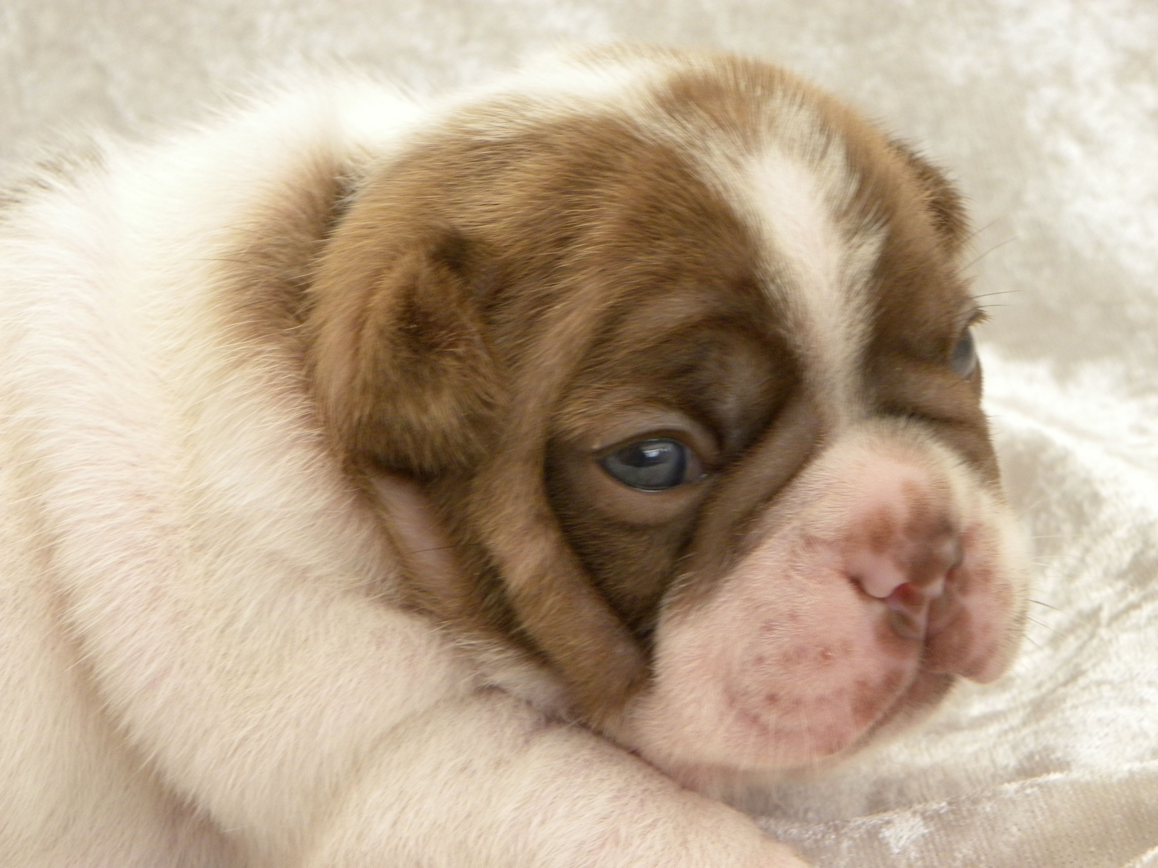 ~ This color is still new and the genetics creating it and the "modifiers" which act on the brown "b" locus and red "e" locus to create this gorgeous diluted caramel color have not yet been found and determined in the French bulldog breed.