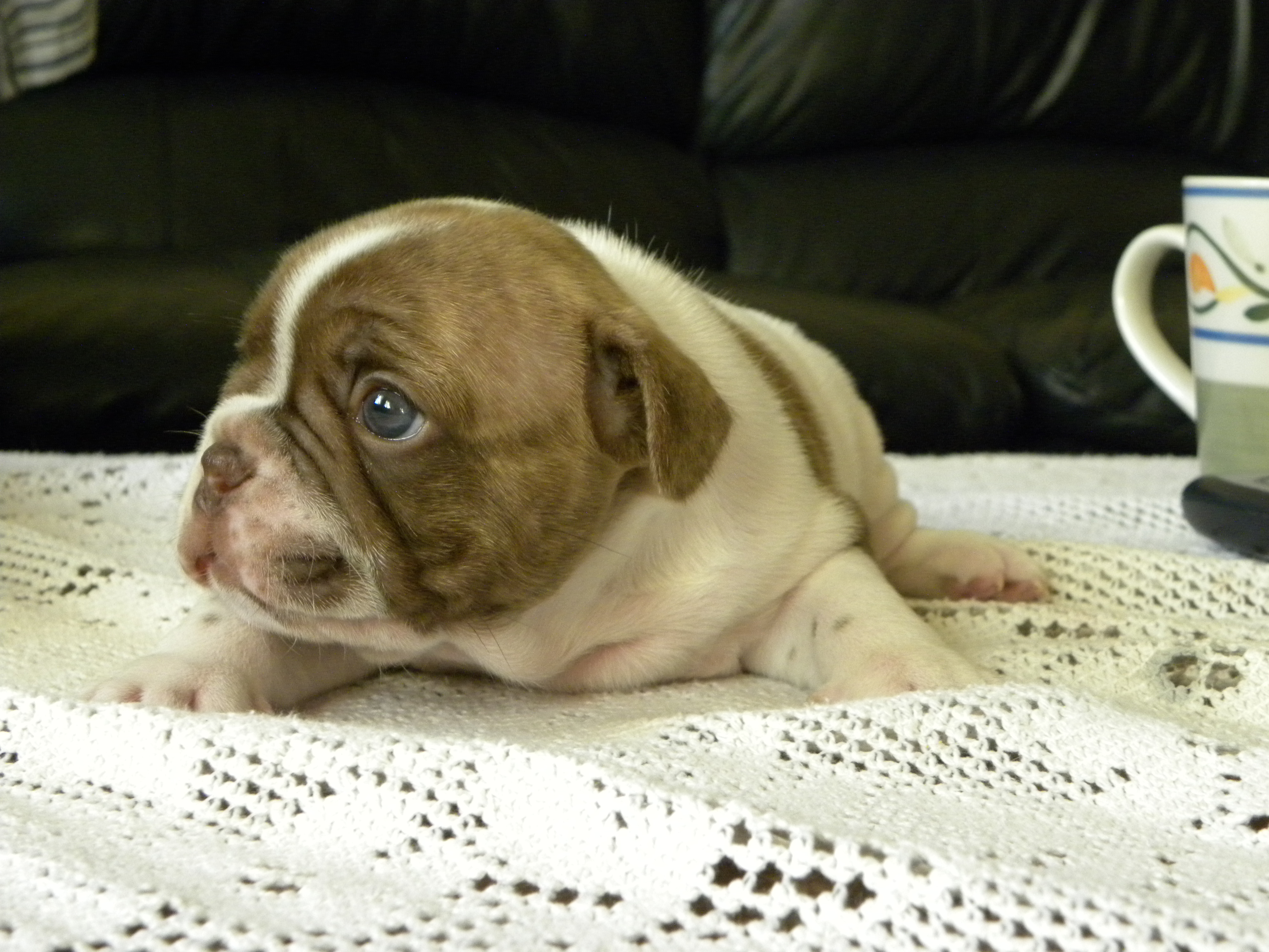 ~ At this time we have only seen a very small handful of puppies this light "new" color in Frenchbulldogs in ALL THE WORLD and we are very happy to be one of the few to have this color/shade.