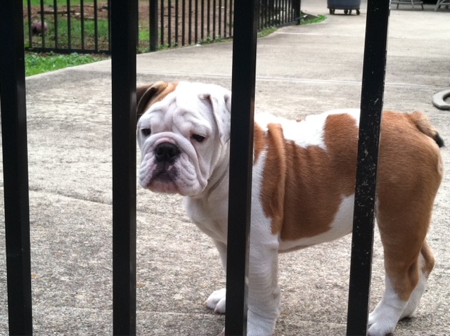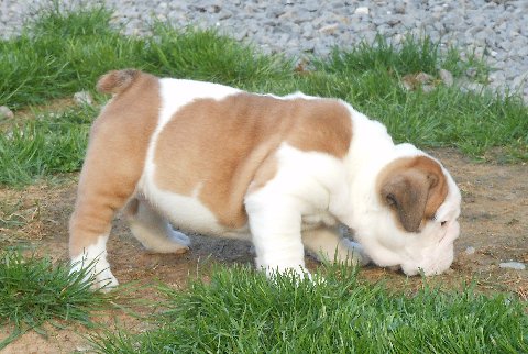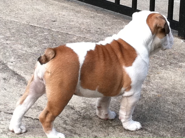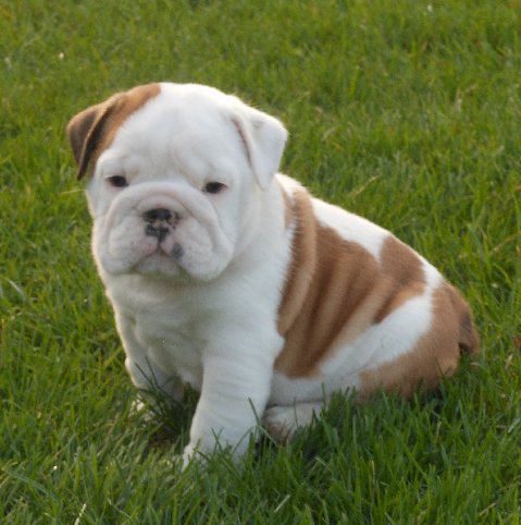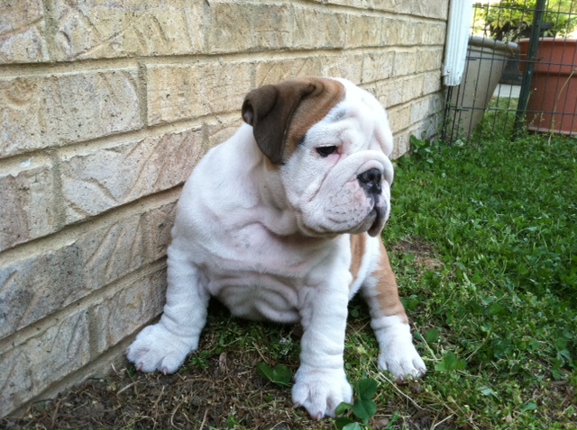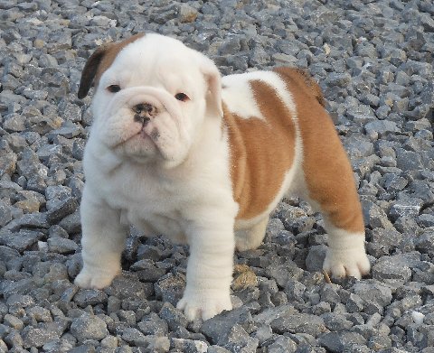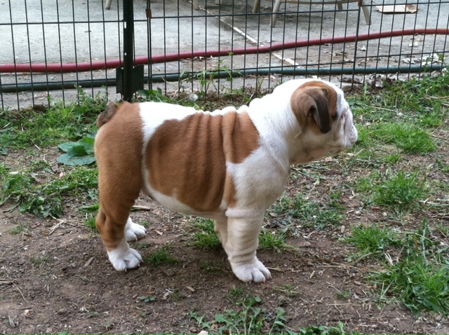 Our sweet and very gorgeous girl "Emily Rose" - Emily is a very classic color and look for English Bulldogs and is a red and white.