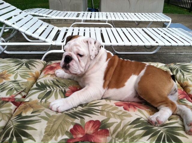 We could not have asked for a more sweet girl and she has a lot of character and determination and is very smart and already rules the house. She even has her own lawn chair/chaise lounge.