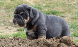 FOREVERYOUNG'S BLUE QUE "PEARL" - she is our blue and tan tri color female and is just as stocky and typey as they come and sweeter then we could have ever hoped for! She will make some gorgeous blue babies with Que Psi one day!